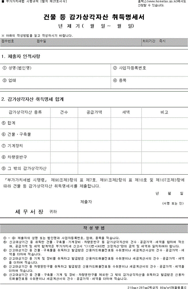 카테고리 없음 건물 등 감가상각자산 취득명세서 by 아프로디테3 2023. 1. 5. 반응형 1. 건물 등 감가상각자산 취득명세서 2. 서식 건물 등 감가상각자산 취득명세서.hwp 0.02MB 반응형 공유하기 게시글 관리 아프로디테의[서식백과사전] 저작자표시 비영리 변경금지 (새창열림) 댓글