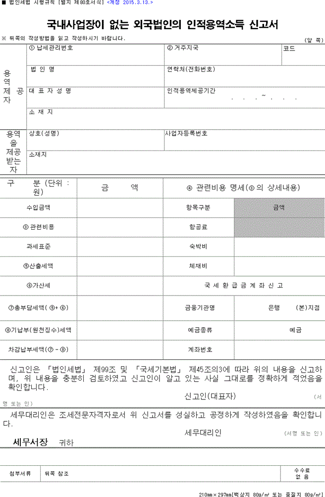 카테고리 없음 국내사업장이 없는 외국법인의 인적용역소득 신고서 by 아프로디테3 2023. 1. 26. 반응형 1. 국내사업장이 없는 외국법인의 인적용역소득 신고서 2. 서식받기 국내사업장이 없는 외국법인의 인적용역소득 신고서.hwp 0.05MB 반응형 공유하기 게시글 관리 아프로디테의[서식백과사전] 저작자표시 비영리 변경금지 (새창열림) 댓글