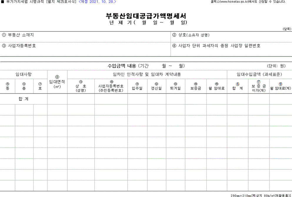 카테고리 없음 부동산 임대공급가액 명세서 by 아프로디테3 2023. 1. 7. 반응형 1. 부동산 임대공급가액 명세서 2. 서식 부동산 임대공급가액 명세서.hwp 0.04MB 반응형 공유하기 게시글 관리 아프로디테의[서식백과사전] 저작자표시 비영리 변경금지 (새창열림) 댓글