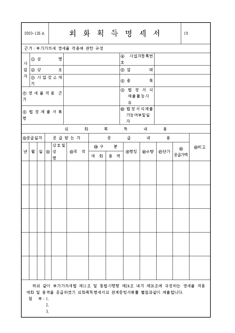 카테고리 없음 [서식받기 ] 외화획득명세서 by 아프로디테3 2023. 1. 14. 반응형 1.외화획득명세서 2. 서식 외화획득명세서.hwp 0.03MB 반응형 공유하기 게시글 관리 아프로디테의[서식백과사전] 저작자표시 비영리 변경금지 (새창열림) 댓글