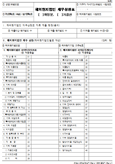 해외현지법인 재무상황표(확정분, 가결산).hwp