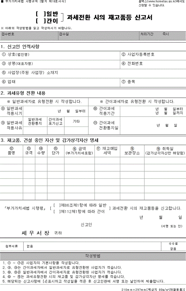 카테고리 없음 일반과세자, 간이과세자 과세전환시 재고품등 신고서 by 아프로디테3 2023. 1. 7. 반응형 1. 일반과세자, 간이과세자 과세전환시 재고품등 신고서 2. 서식 과세전환시 재고품등 신고서.hwp 0.02MB 반응형 공유하기 게시글 관리 아프로디테의[서식백과사전] 저작자표시 비영리 변경금지 (새창열림) 댓글