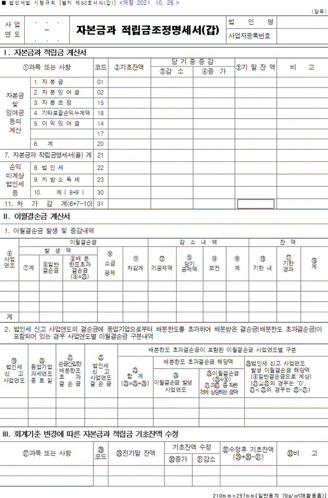 카테고리 없음 자본금과 적립금조정명세서(갑, 을) by 아프로디테3 2023. 1. 26. 반응형 1. 자본금과 적립금조정명세서(갑, 을) 2. 서식받기 1. 자본금과 적립금조정명세서(갑, 을).hwp 0.08MB 반응형 공유하기 게시글 관리 아프로디테의[서식백과사전] 저작자표시 비영리 변경금지 (새창열림) 댓글